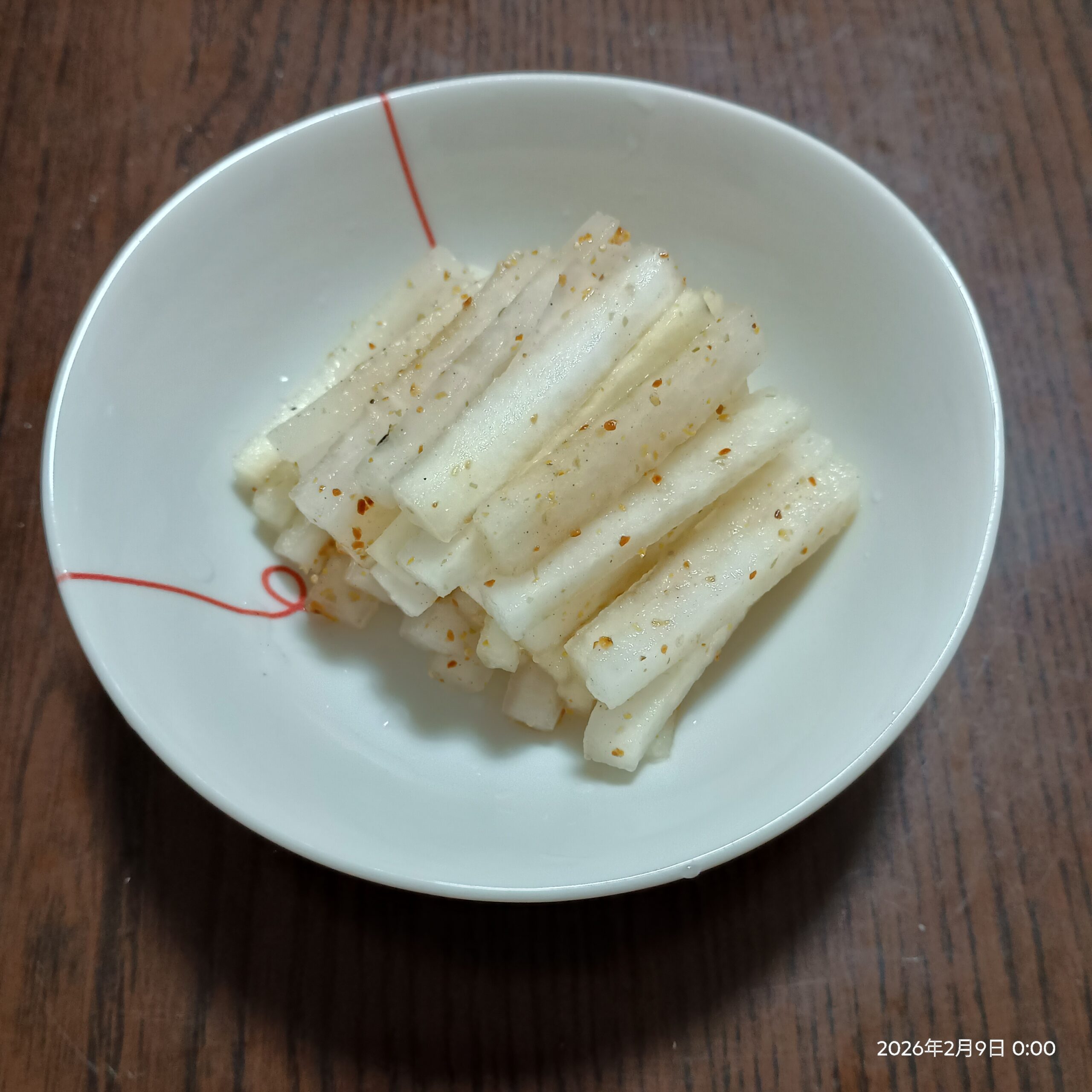 ダイコン・・・1/4本塩・・・少々七味唐辛子・・・お好みの量
